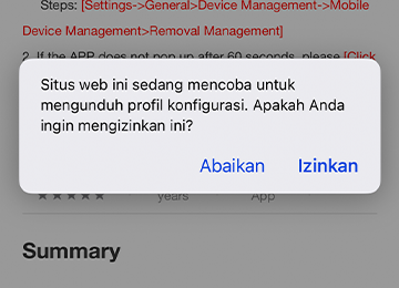 Pilih "OK" lalu "Izinkan" untuk mengunduh profil konfigurasi. Tunggu prompt dan "Tutup". Anda akan dialihkan ke pengaturan VPN dan manajemen perangkat di ponsel Anda.