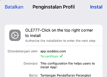 Pilih "OLE777 --[Click to install]" di bawah profil yang diunduh.